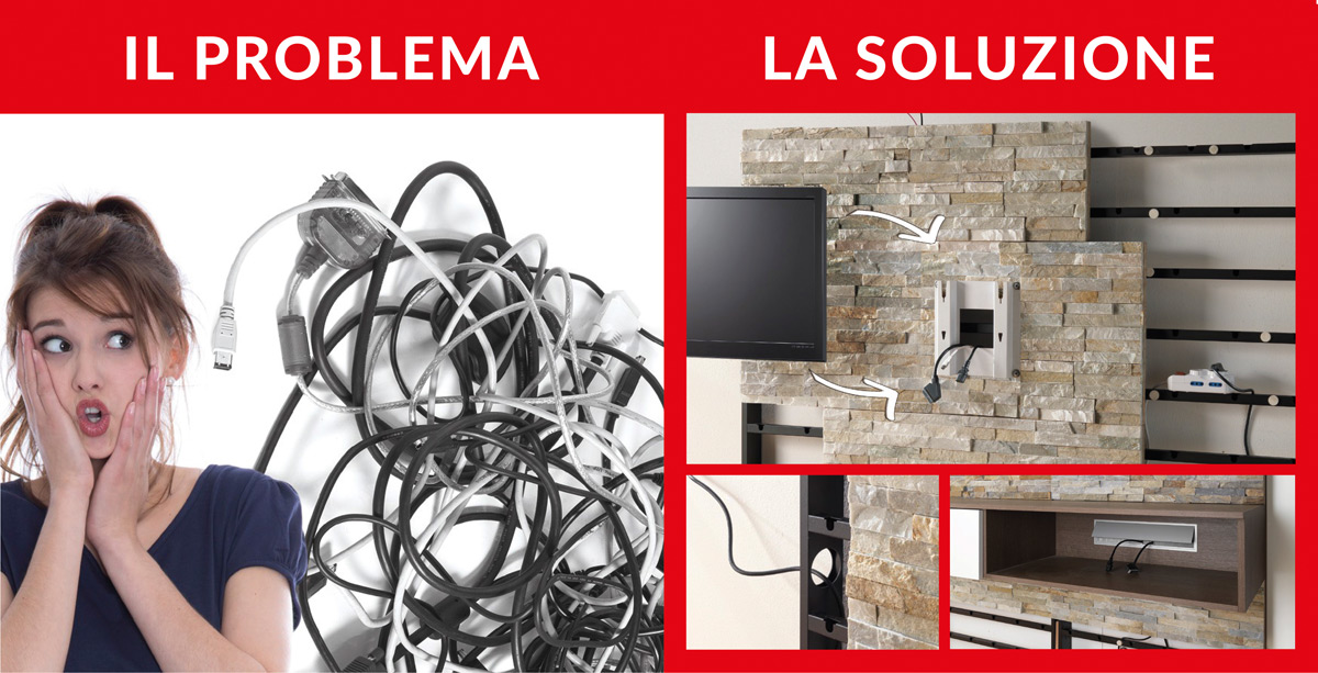 Il sistema offre la possibilità di mettere ordine, evitando il passaggio di cavi elettrici sulla superficie dei mobili, inserendoli nei telai portanti.